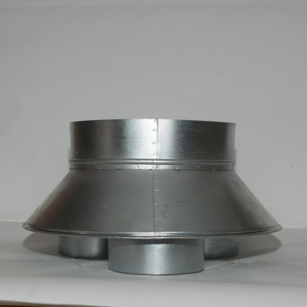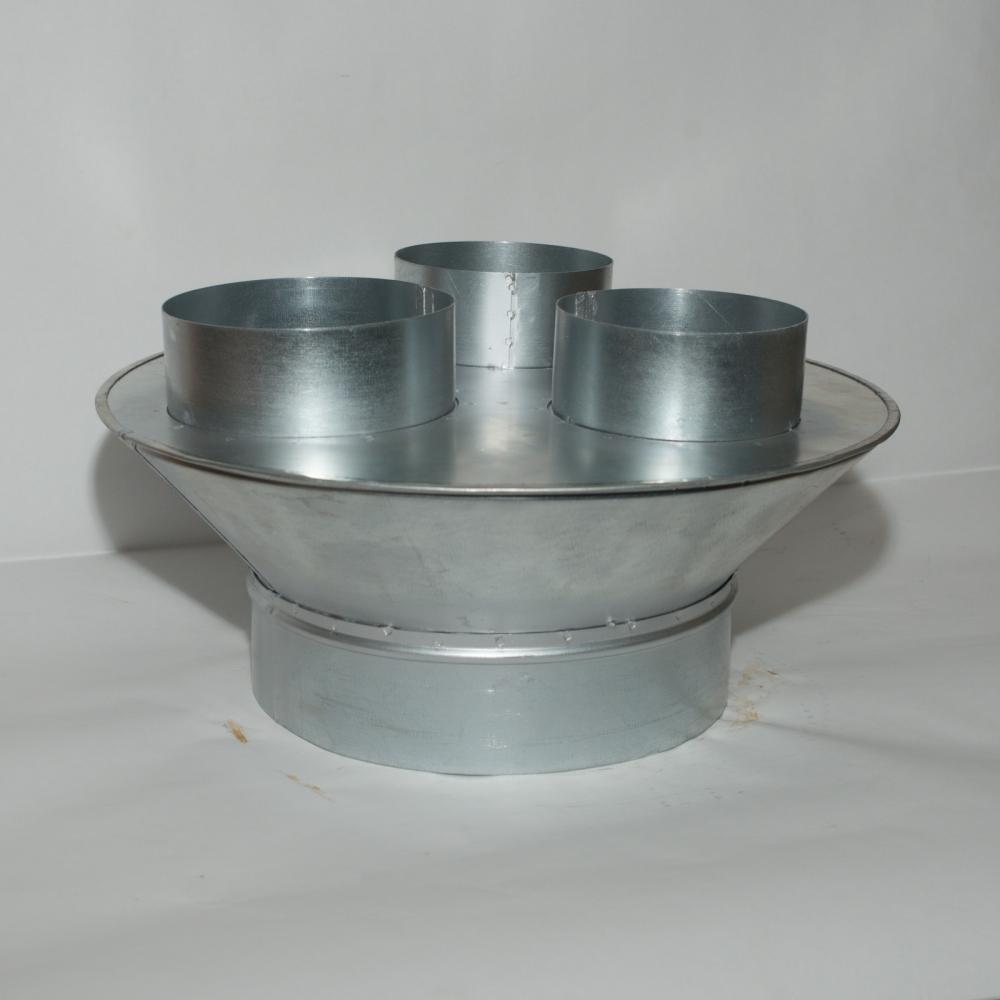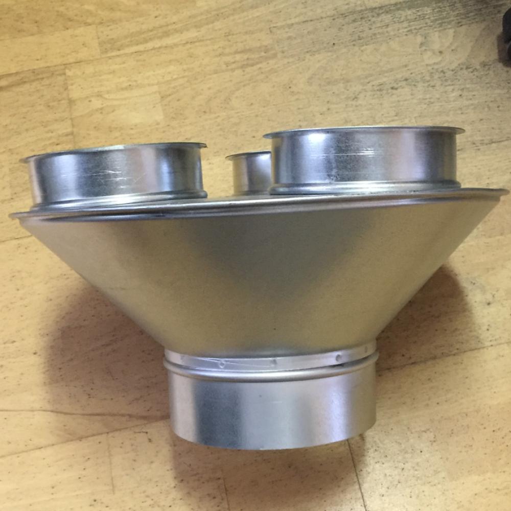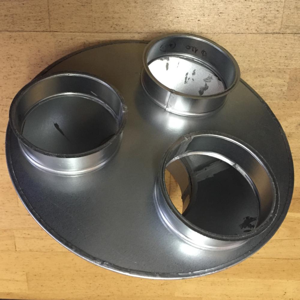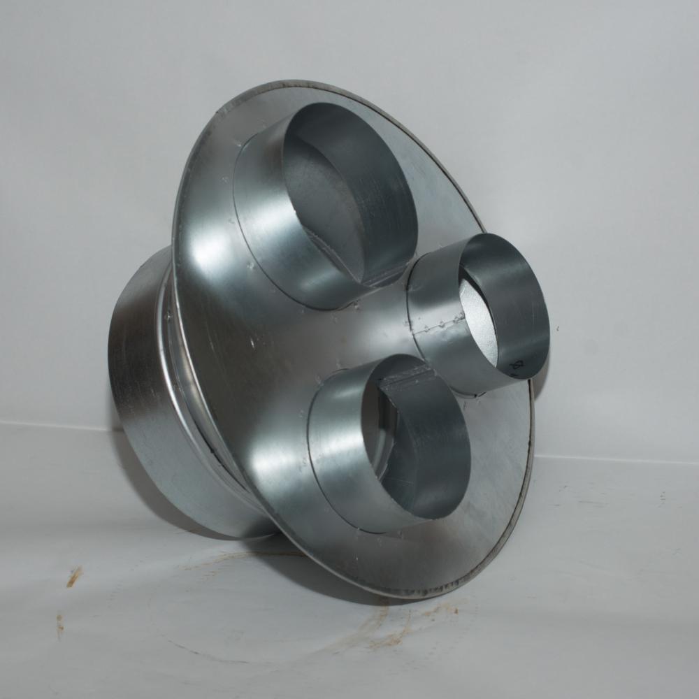 Sammler rund mit drei Schlauchanschlüssen, verzinkt.