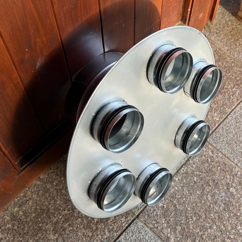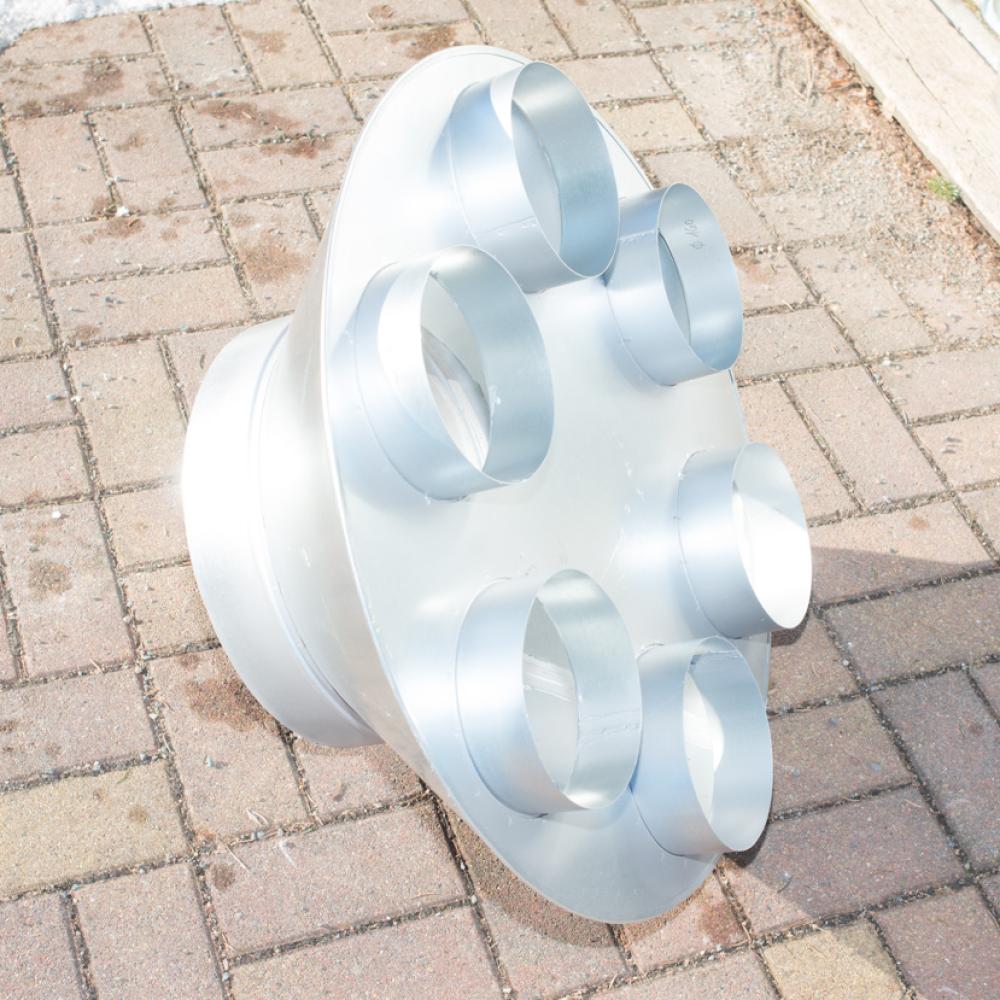 Sammler rund mit sechs Schlauchanschlüssen, verzinkt.