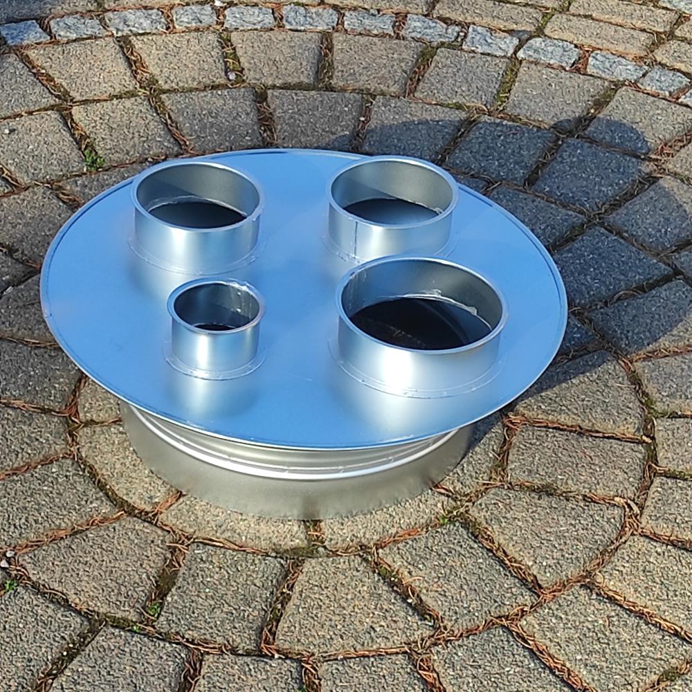Sammler rund mit vier Schlauchanschlüssen, verzinkt.