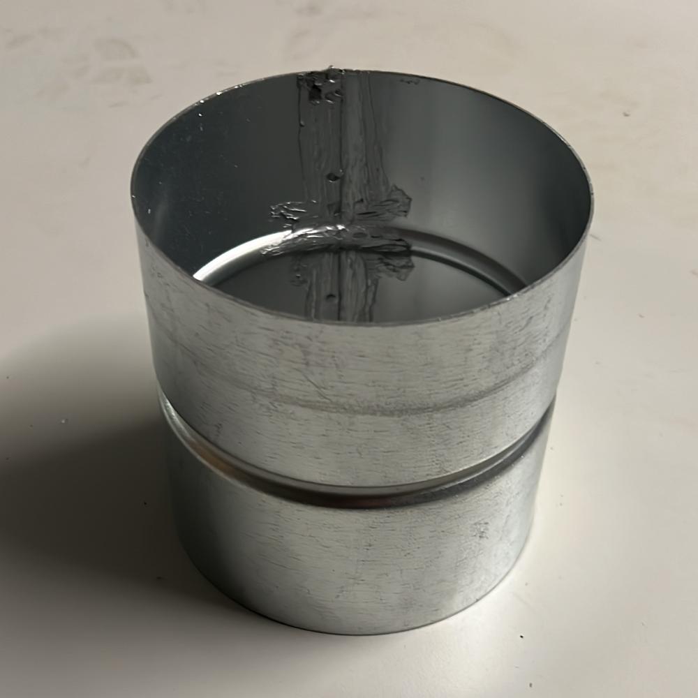 Unsere Formteilverbindungsstücke bestehen aus verzinktem Stahlblech. Am Verbindungsstück befindet sich eine Anschlagwölbung (Wulst), diese verhindert, dass die Muffe zu weit auf das Formteil rutscht. Eine Abdichtung kann nachträglich mit Gewebedichtband (GE-DI) realisiert werden.