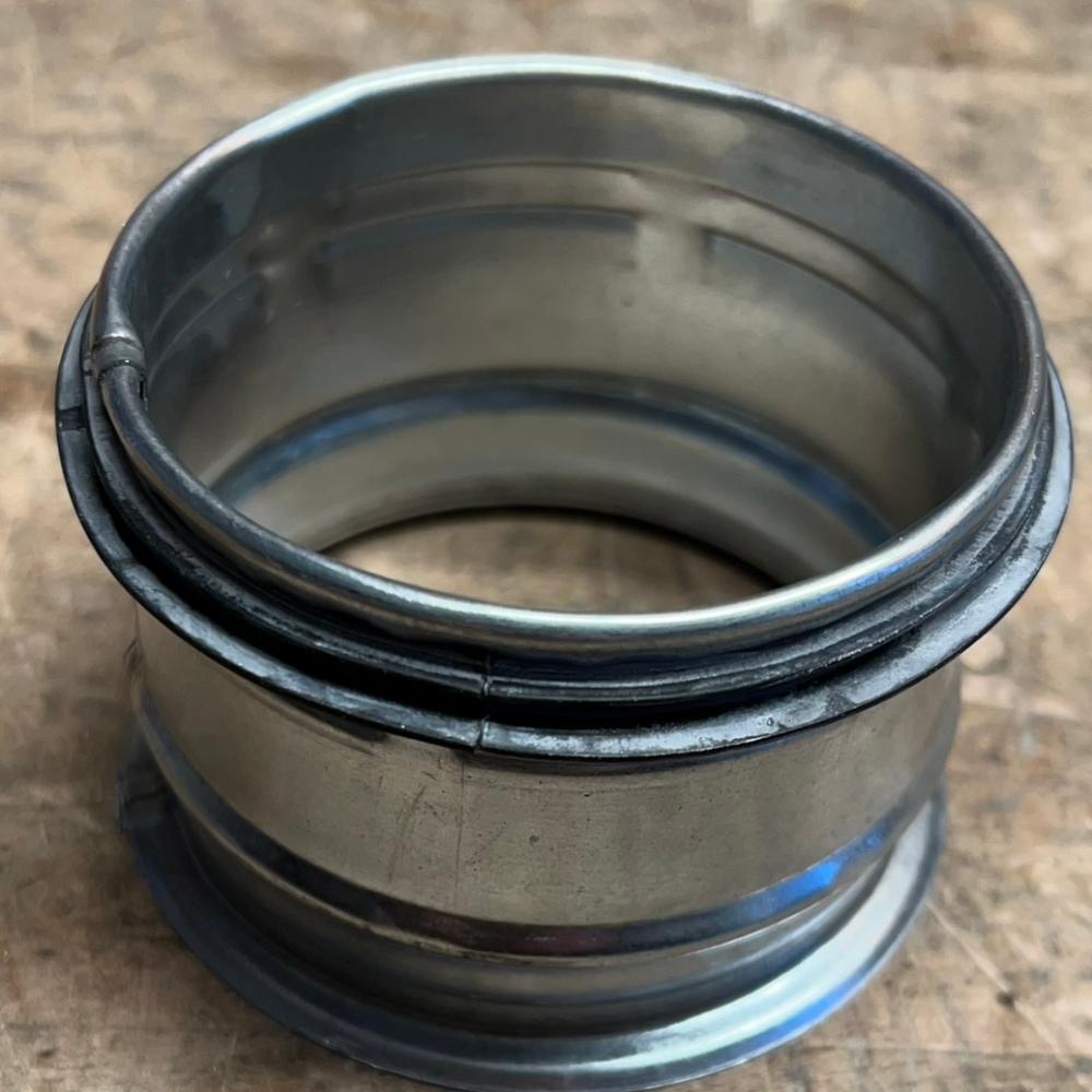 • Muffe zum Verbinden zweier Formstücke. Material: verzinktes Stahlblech