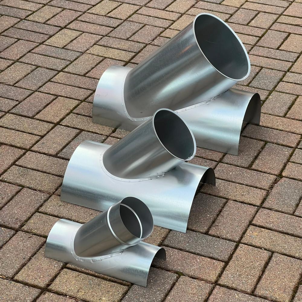 Unsere Sattelstutzen bieten eine zuverlässige Verbindung für Rohre unterschiedlicher Größe. Der Durchmesser d1 wird entsprechend der Auswahl festgelegt und ermöglicht eine flexible Anpassung an individuelle Bedürfnisse. Ideal für T-Stücke und Wickelfalzrohre eignet sich der Sattelstutzen zum sicheren Anbringen an vorhandene Rohrleitungen. Mit einem Abgang von 45° oder 90° gewährleistet er eine stabile und robuste Rohrverbindung. Verschiedene Winkel wie 30°, 45° oder 60° sind auf Anfrage möglich. Sie können die passende Konfiguration für Ihren Bedarf wählen, sei es mit einem glatten d1, einem glatten d3 Stutzen, einem d3 mit Lippendichtung oder einem d3 mit Bord für Sickenschelle. Unsere Sattelstutzen bieten maximale Flexibilität für individuelle Anwendungen. Zusätzlich sind weitere Durchmesser sowie Sonderabmessungen auf Anfrage erhältlich. Alle Teile können ebenfalls in V2A mit einer Materialstärke von 0,8 mm gefertigt werden. Setzen Sie auf eine sichere und robuste Rohrverbindung mit unseren Sattelstutzen!